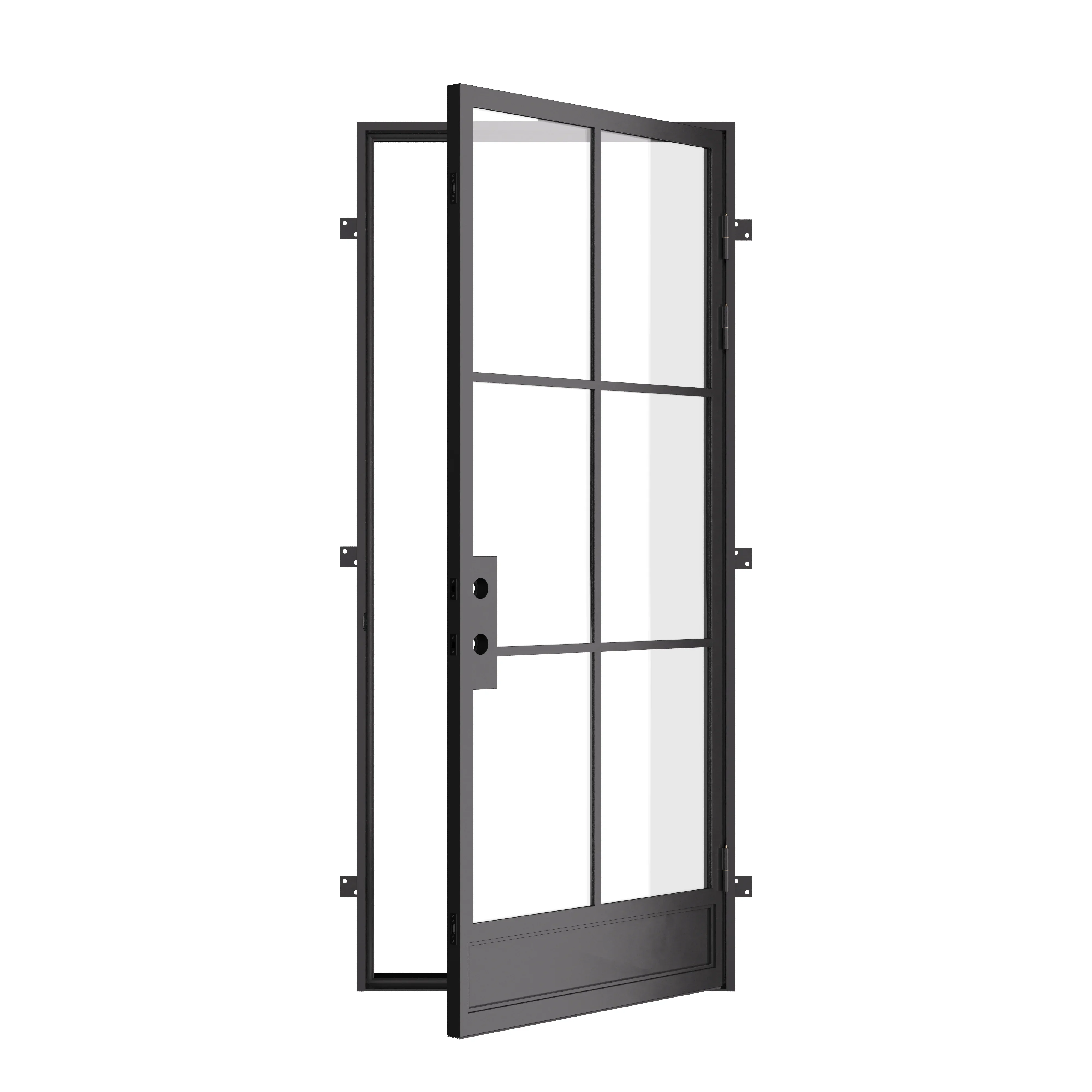 The Air 7 single steel door design from Pinky's Iron Doors has a classic yet contemporary look, with horizontal bars that add a touch of old world charm. The design is part of the steel windows and doors Air Collection, which is made for modern homes that have a minimalistic style. These doors and windows have simple designs and hardware that are sleek and eye-catching, with a focus on clean, linear shapes instead of organic curves. Our Air 7 doors are very versatile and can be used in many ways. They are made of modern steel and have a sleek design that can enhance the beauty of any space. People have used them as entry doors, patio doors, french doors, steel doors for the back or side of a building, and even as dividers within a room.