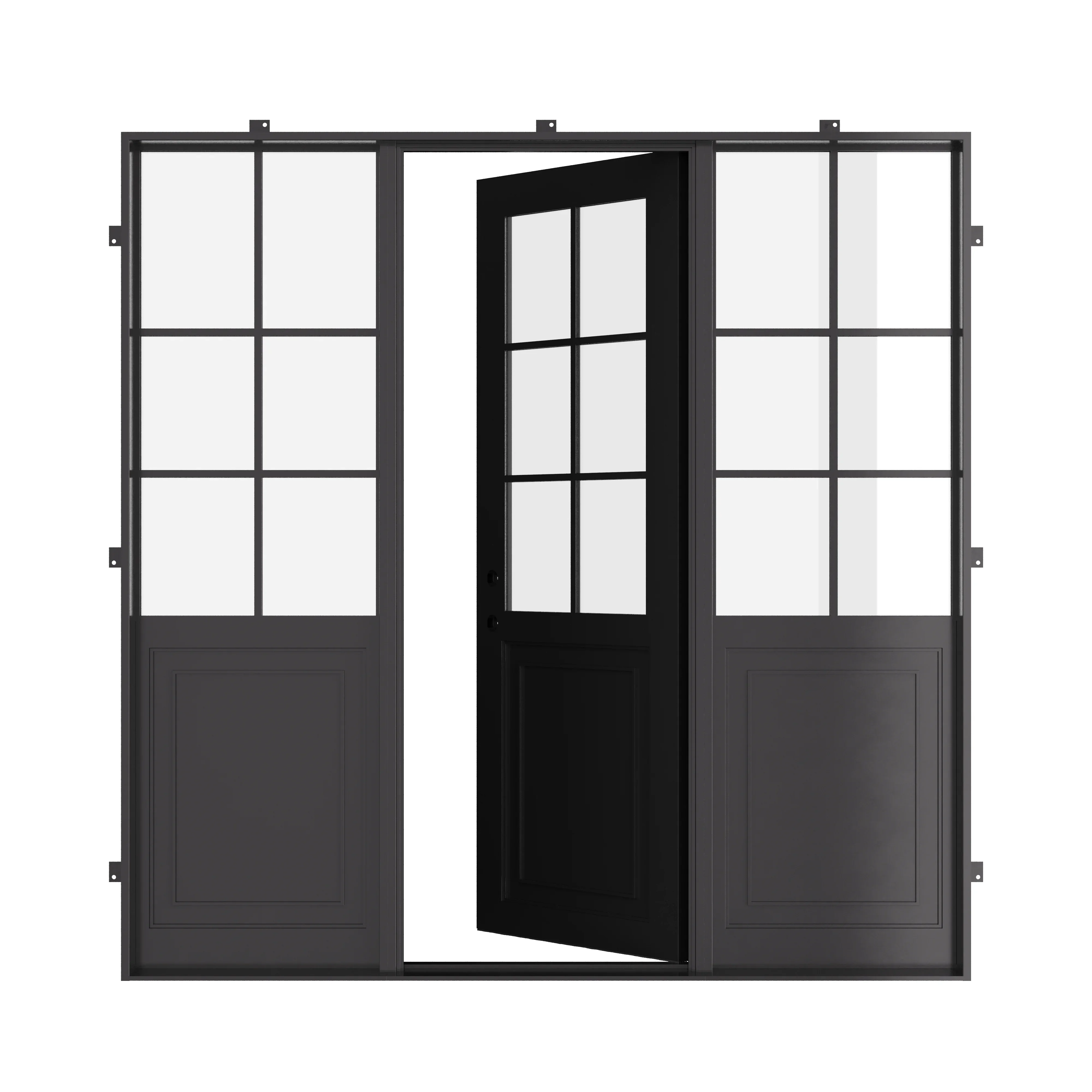 The doors are 2" thick and equipped with steel thresholds and bullet hinges with welded grease fittings. Pre-drilled holes on the jamb tabs enable simple installation. To provide an energy-efficient product, our 5/8" tempered dual pane operable glass designs feature dual seals to reduce heat and air leakage. Additionally, Polyurethane dual foam weather stripping is added to the frames, to minimize thermal transfer. Additionally, a door sweep is included and installed at the bottom of the door to help block out sound, light, drafts, insects, moisture, smoke, and fire.