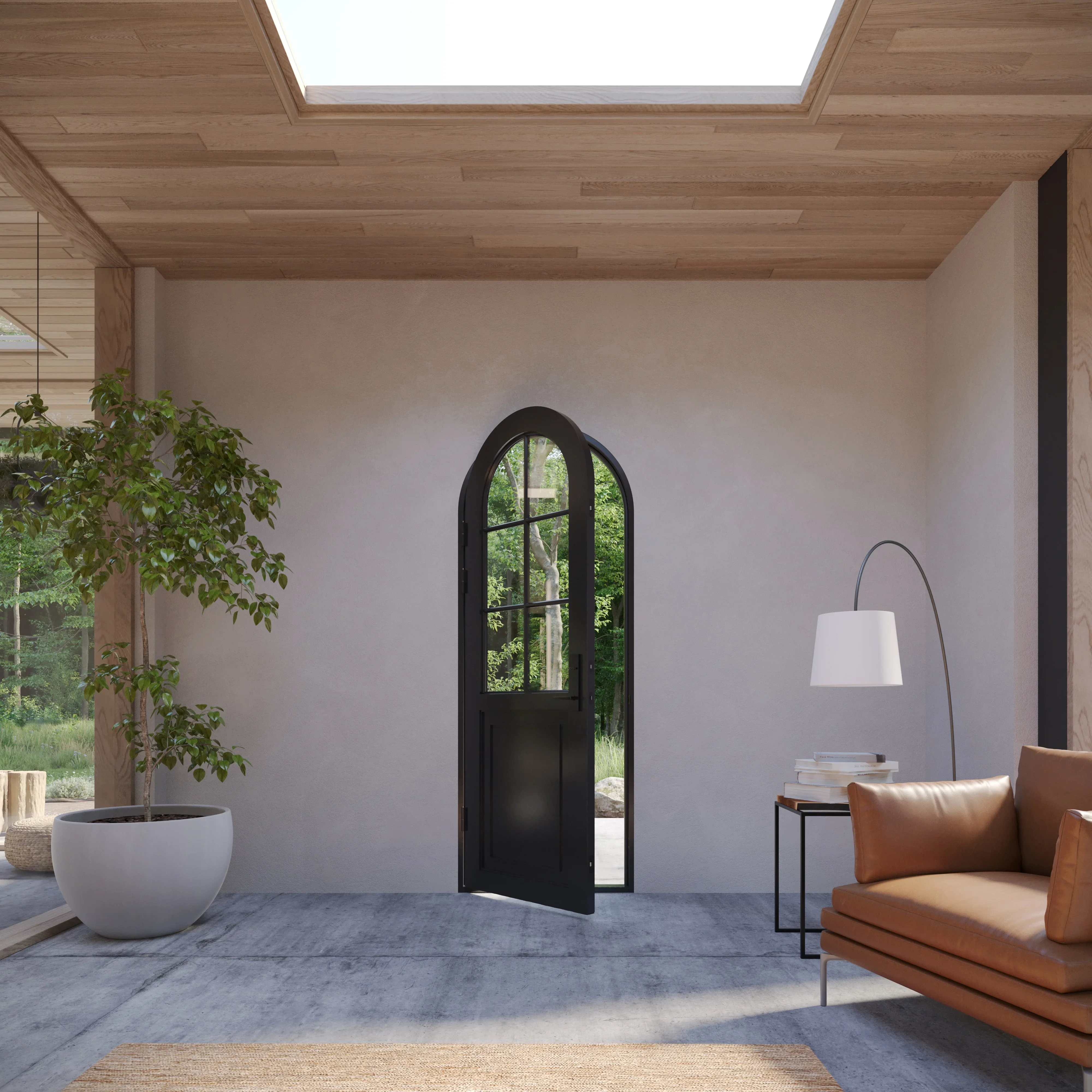 The Getty is crafted from premium 12 gage material, with doors measuring 2" thick. Steel thresholds and bullet hinges with built-in grease fittings are welded onto the frame for added sturdiness. Pre-drilled tabs have been welded to the jamb for simplified installation. 5/8" dual pane, tempered glass with dual seals helps reduce both heat and air leakage, providing an energy-efficient option for customers. We also equip each frame with Polyurethane dual foam weather stripping, mitigating thermal transfer from hot and cold weather. Moreover, our door seal helps protect against infiltration of sound, light, drafts, insects, and moisture, sealing gaps at the base of the door.